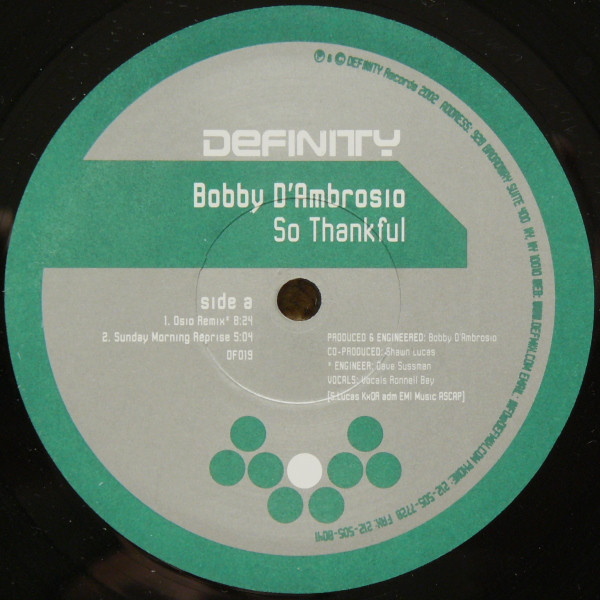 Categories: 12" Vinyl Single, BOBBY D'AMBROSIO, Dance