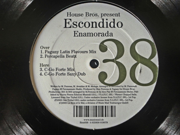 Categories: 12" Vinyl Single, Dance, ESCONDIDO